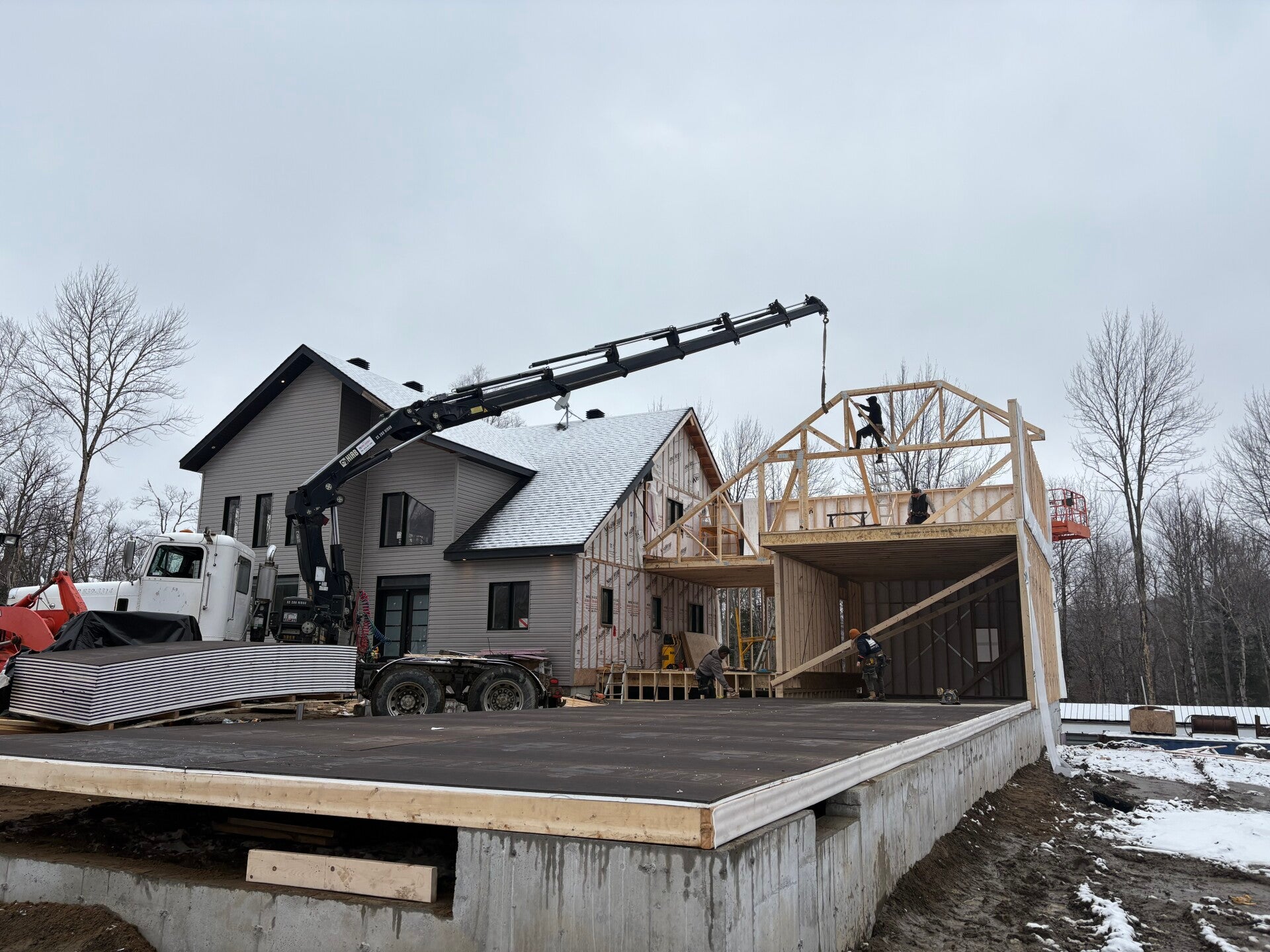 Nous offrons un service de boomtruck efficace pour faciliter la mise en place de vos charpentes et éléments lourds sur les chantiers. Peut importe votre projet nous sommes là pour vous!